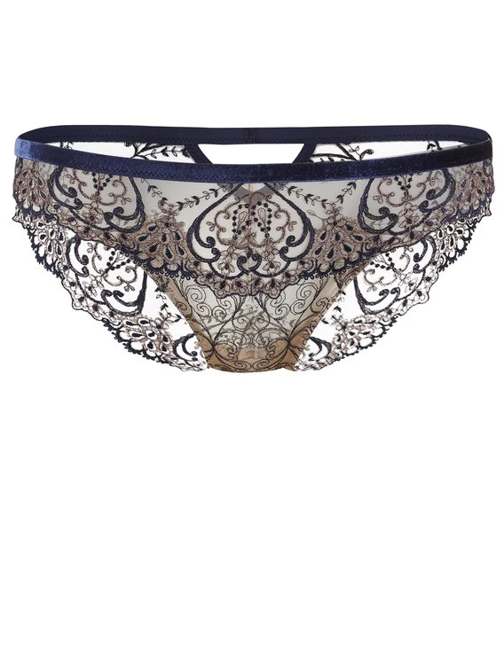 Schimmernd und atemberaubend schön, verzaubert AUBADE mit dem Slip aus der „Coeur Enlacés“ Kollektion. Samtbänder betonen die weiblichen Körperformen, während die Stickereien die Silhouette zart mit dekorativen Arabesken komplimentieren. Der edle Lurexfaden verleiht dem schmuckhaften, hüftigen Slip die elegante Note.