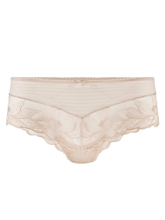 Die Pariser Dessous-Marke AUBADE präsentiert mit der Kollektion „Fleur de Tattoo“ eine ausdrucksstarke, verführerische Linie, die mit einer Kombination aus ultrafeinem Tüll und floralen und grafischen Elementen für einen sexy Tattoo-Effekt sorgt. Die Saint Tropez Shorty besteht aus filigraner Laize-Spitze im oberen Bereich und besticktem Tüll im unteren Bereich der Panty, die sich wie eine zweite Haut auf den Körper legen. Der knappe Schnittform am Gesäß und der Cut-Out auf der Rückseite setzen die femininen Kurven perfekt in Szene machen die String-Panty zu einem verführerischen Blickfang.
