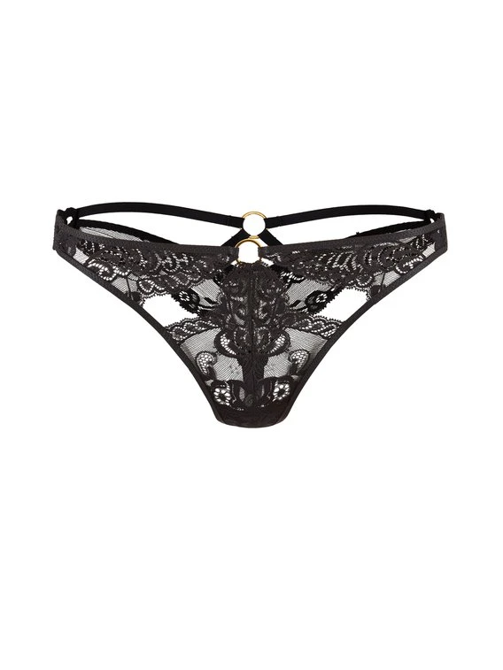 Das Pariser Dessous-Label AUBADE präsentiert mit der Linie “Precious Tale” eine besonders luxuriöse Wäsche-Kollektion aus hochwertiger Spitze, raffinierten Guipure-Borten und erotischen Bänder-Details für einen Hauch von Bondage. Der String der Serie spielt mit dem Kontrast aus Blickdichte und Transparenz und sorgt dank seiner knappen Schnittform für einen sinnlichen Look. Die Cut-Outs und Bänder-Details runden das verführerische Design des Spitzen-Strings perfekt ab.