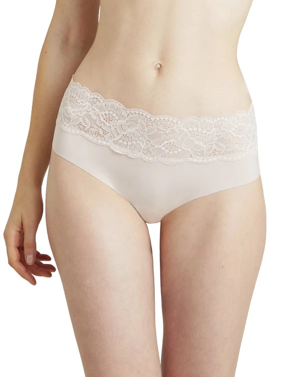 Mit der “Sweetessence” Linie präsentiert das Pariser Dessous-Label AUBADE eine neue Must-Have-Kollektion, die sich durch bequeme, alltagstaugliche Schnitte, feminine Spitzen-Details und recycelte Stoffe auszeichnet. Die Shorty besteht aus weicher Komfort-Wirkware und einem anschmiegsamen, breiten Spitzenbund, um ein angenehmes Tragegefühl zu vermitteln. Die flachen, elastischen Einfassungen der Panty sorgen zudem für einen idealen Sitz.