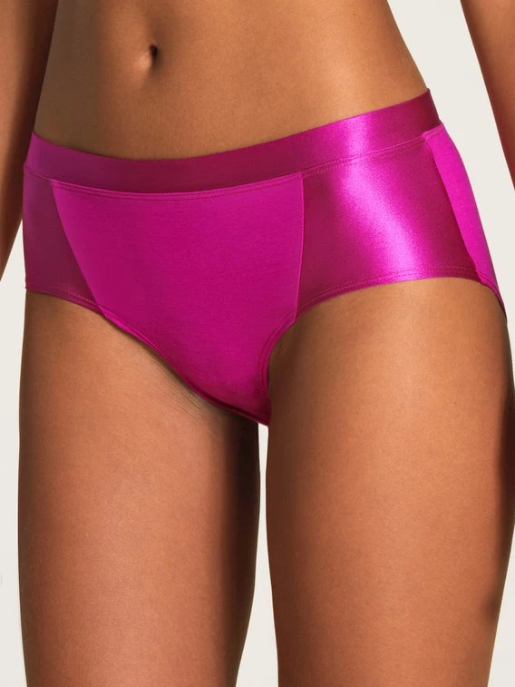 Die Panty in neuer Schnittform aus der neuen Serie CATE von CALIDA ist aus hochwertiger Supima®-Baumwolle mit swiss+cotton-Gütesiegel gefertigt. Seitlich und am Bund wurden glänzende Satinblenden eingearbeitet. Ein besonders edler Look für den Alltag!