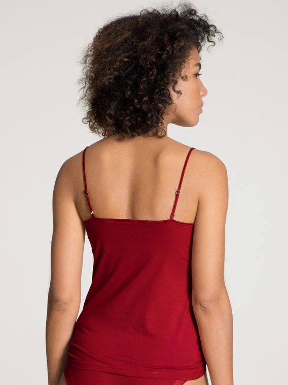 Edles Spaghetti-Top aus der Serie CATE von CALIDA. Das Unterhemd ist aus hochwertiger Supima®-Baumwolle gefertigt und mit verstellbaren Trägern ausgestattet. Die Satinblende am flachen V-Ausschnitt gibt dem Shirt einen charmanten Touch.