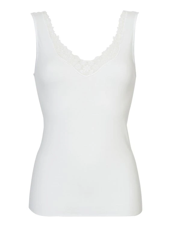 Erstklassiger Tragekomfort, kombiniert mit feminier Spitze. Das saumfreie, ärmellose Unterhemd aus extrafeiner Baumwolle ist am Dekolleté hochwertig St. Galler-Spitze veredelt. Die Oberteile der Serie FEMININ SENSE werden auf speziellen Rundstrickmaschinen gestrickt, dadurch gibt es keine störenden Seitennähte. Extraflache, saumlose Abschlüsse unterstreichen das angenehme Tragegefühl – Tag für Tag!