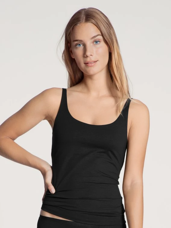 Ein besonders angenehmes Tragegefühl bietet dieses ärmellose Shirt mit Innenbustier aus der Basic-Serie NATURAL COMFORT aus Supima®-Baumwoll-Elasthan-Jersey. Die feine Mischung sorgt für natürlichen Glanz, einen glatten Griff, extrem vermindertes Pilling und minimale Schrumpfwerte.