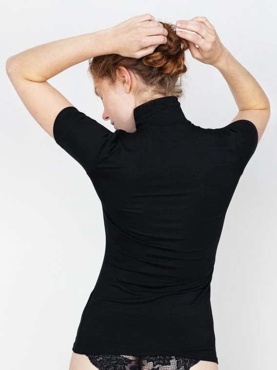 Ready for Business mit dem Kurzarm-Shirt von ERLICH TEXTIL aus der Serie “Ruth”. Egal, ob unter den Blazer oder ganz lässig zu Highwaist-Jeans – das Shirt ist idealer Begleiter im Alltag. Die kurzen Ärmel liegen eng an und sind somit ideal für die warmen Tage, während sich der Rollkragen leicht an den Hals anschmiegt. Die Kunstfaser Modal wird aus natürlichen Zellulosefasern aus Buchenholz gewonnen und bietet neben dem gewohnten Tragekomfort von Baumwolle eine sehr feine und seidige Oberfläche für noch mehr Wohlfühlgefühl.