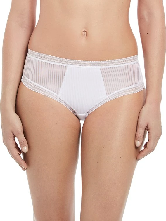 Der Slip aus der Serie „Fusion“ von FANTASIE präsentiert sich in einem femininen, modischen und zugleich zeitlosen Design. Der gestreifte Jacquard-Stoff mit hohem Stretchanteil bietet eine hervorragende Kombination aus schöner Optik und hohem Tragekomfort. Die breiten verarbeiteten Seiten des Rio-Slips sorgen für eine großflächige Abdeckung während die rückwärtige Mittelnaht mit dezenter Raffung formgebend wirkt.