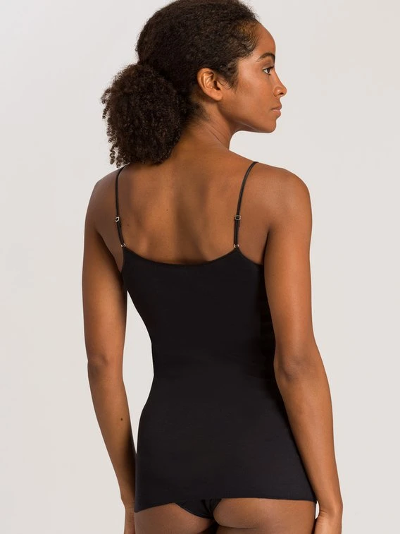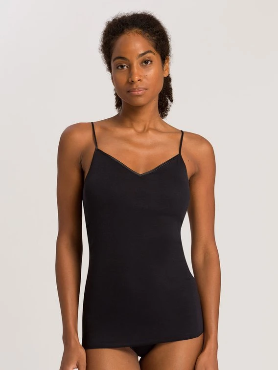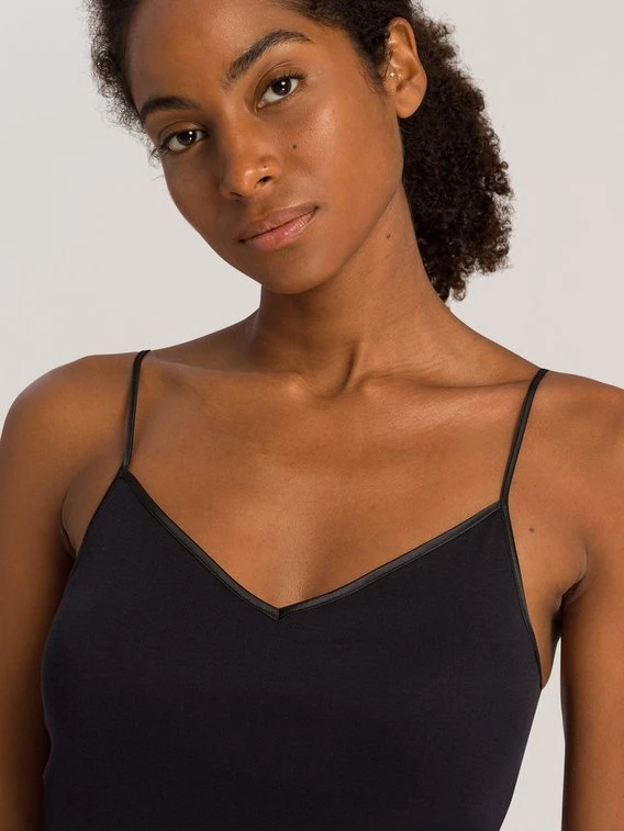 Das Bestseller Spaghetti-Top von HANRO aus der “Cotton Seamless” Kollektion gibt es jetzt neu als BH-Top mit herausnehmbaren Polstern. Feinste, weiche, merzerisierte Baumwolle und die saum- und seitennahtfreie Verarbeitung schaffen ein angenehmes Tragegefühl. Die zarte Satineinfassung sorgt für einen edlen, klassischen Look.