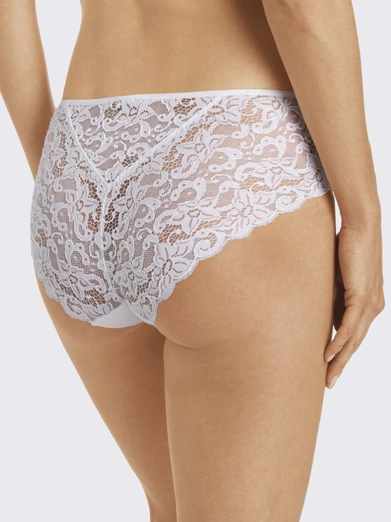 Der feminine Look des Midi-Slips von HANRO der „Moments“-Kollektion überzeugt durch den romantischen Spitzeneinsatz. Die wunderschöne französische Spitze lenkt den Blick des Betrachters gekonnt auf die Hinterpartie. Die Vorderseite aus unifarbener, bedeckender Mikrofaser sorgt für eine tolle Passform und soften Tragekomfort.