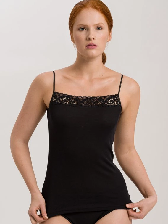 Das “Moments”-Spaghetti-Top von HANRO ist ein echtes Must-Have. Es ist aus reiner Baumwolle und mit STeP by OEKO-TEX® Zertifizierung hergestellt, sodass man sich sicher sein kann, dass es langlebig und hochwertig verarbeitet ist. Der Ausschnitt ist mit Spitze verziert, was ihm eine feminine Note verleiht. Dieses Oberteil ist ein perfektes Basic, das zu jedem Outfit kombiniert werden kann und sich wunderbar an die Figur anschmiegt.