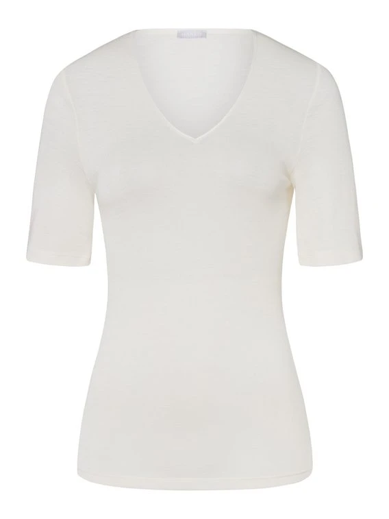 Erlebe ein luxuriöses Tragegefühl mit dem HANRO Damen-Shirt mit V-Ausschnitt aus der Serie “Woolen Silk”. Dieses hochwertige Top ist aus einer weichen, temperaturausgleichenden Merinowolle-Seide-Mischung gefertigt, die Dir ein angenehm leichtes und langlebiges Trageerlebnis bietet. Der feine Satineinfass am Ausschnitt und die nahtlose Verarbeitung verleihen dem Shirt einen eleganten Look. Die Wolle ist atmungsaktiv, schnell trocknend und temperaturregulierend, während Seide ein Gefühl von Luxus, Glanz und Weichheit vermittelt. Durch die STeP by OEKO-TEX® Zertifizierung kannst Du sicher sein, dass das Produkt in einer Produktionsstätte hergestellt wurde, die sich durch umweltfreundliche Prozesse, soziale Arbeitsbedingungen und optimale Arbeitssicherheit auszeichnet. Erlebe ein luxuriöses Trageerlebnis und lass Dich von HANRO verwöhnen.