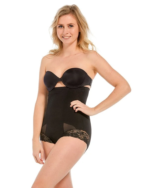 Der Panty mit Shaping-Effekt von MAGIC BODYFASHION besteht aus leichtem Mesh-Material, das den Bauchbereich und den unteren Rückenbereich fest formt. Die transparenten und atmungsaktiven Stoffe werden mit schöner Spitze kombiniert und verleihen der Highwaist Shaping-Panty einen femininen und sexy Look. Der spezielle Silikonstreifen an der Innenseite des Oberteils verhindert, dass der Slip bei Bewegungen nach unten rollt und unbequem einschneidet.