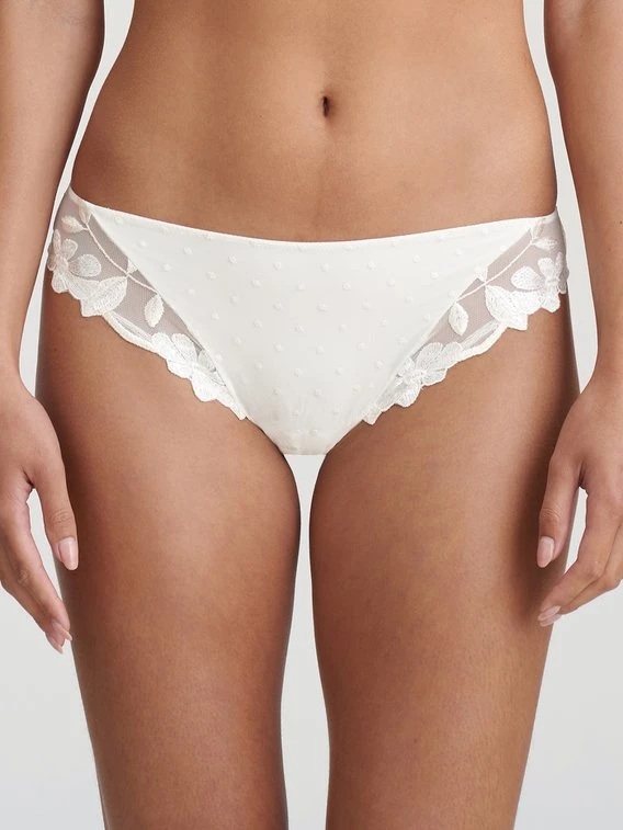 Die Serie “Agnes“ von MARIE JO steht für verführerische Dessous, die sich nach Lust und Laune kombinieren lassen. Der Rio-Slip begeistert mit seinem bequemen Schnitt und den femininen, schön verarbeiteten Details. Die Kombination aus blickdichter Vorder- und Rückseite und transparenter, floraler Spitze an den Seiten, lädt zum Wohlfühlen ein. Dank des Stretchmaterials liegt das Höschen perfekt auf der Haut und schmeichelt jeder Figur.