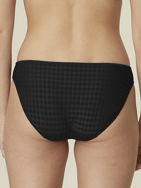 Zeitlos und modisch zeigt sich der bewährte Rio-Slip der Serie „Avero“ von MARIE JO. Vollkommen blickdicht aus grafischem Stretchmaterial und elegant mit einem gestickten Gänseblümchen verziert. Ein dünnes Fertigungsbändchen an den Pobacken sorgt dafür, dass der Slip sich unter engen Hosen nicht abzeichnet.