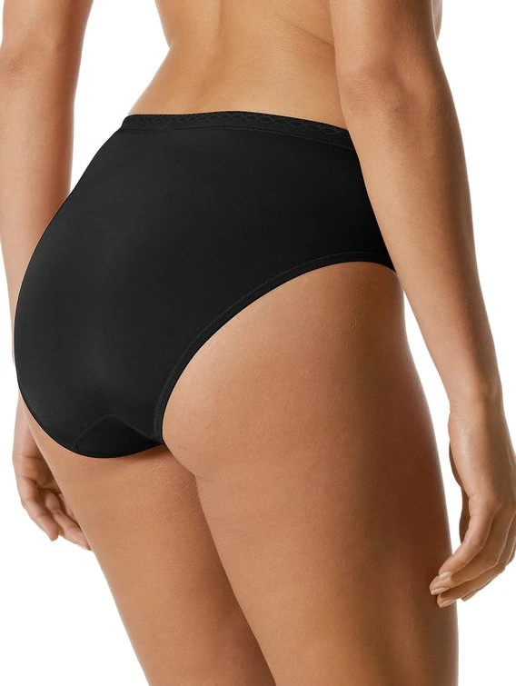 Einfach zauberhaft. Femininer, breiter geschnittener Hüftslip aus einem tollen Materialmix und mit feinem Mäusezahnabschluss am Bund. Hautfreundlich ist der Slip von MEY durch supergekämmte Baumwolle innen- außen sorgt Viskose für einen wertvollen Seidenglanz.