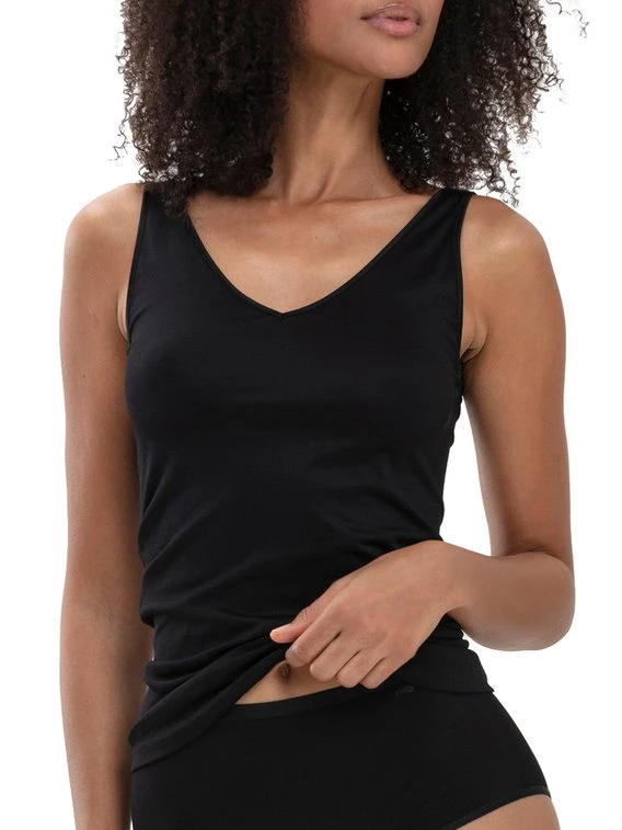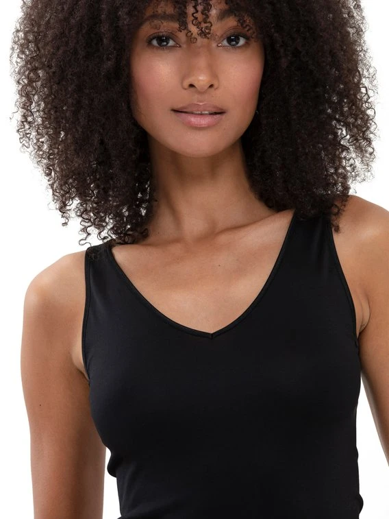 Das 2-in-1 Top der zeitlosen „Emotion“ Kollektion aus dem Hause MEY ist der perfekte Alltagsbegleiter! Das Unterhemd verfügt über einen V-Ausschnitt auf der einen und einen Rundhalsausschnitt auf der anderen Seite. So bietet das Tanktop flexible Trage- und Kombinationsmöglichkeiten. Das ärmellose Unterhemd besteht aus einem weichen, langlebigen und elastischen Viskose-Mix für ein natürliches Tragegefühl. Zudem verzichtet MEY bei der Produktion dieses Tops auf Seitennähte, um höchsten Komfort zu bieten.