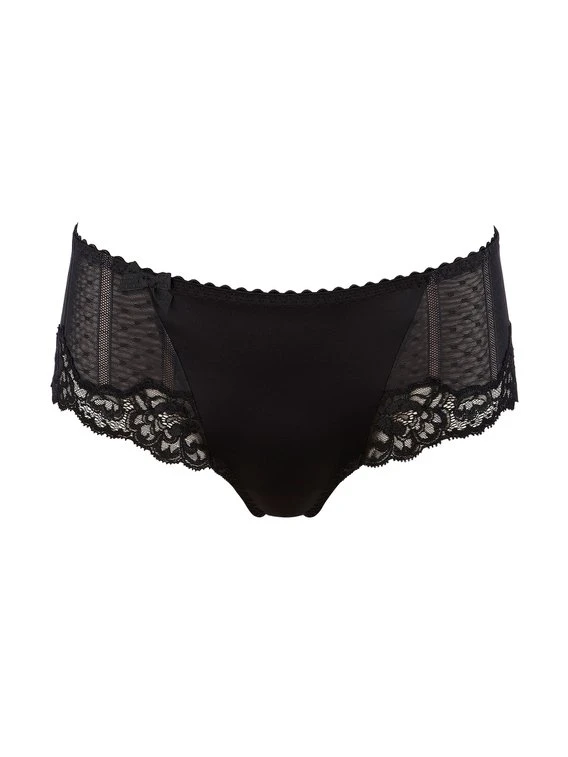 Im femininen Retro-Chic präsentiert sich die Panty aus der “Couture”-Linie von PRIMADONNA. Grafische Plumetis-Spitze wird mit floralen Spitzenabschlüssen kombiniert. Die kleine Zierschleife am Bund und die Teilungsnaht an der Rückseite komplettieren den Look und machen die Panty zum perfekten Gegenstück zum Bügel-BH der Serie.