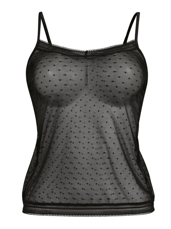 Das Hemdchen aus der Serie »Emily« von ROSA FAIA besticht durch seine feine, verführerische und elegante Optik. Die Kombination aus transparentem Punktetüll und filigraner Spitze an Dekolleté und Saum macht das feminine Design aus und sorgt für das gewisse Etwas. Zudem ermöglichen die längenverstellbaren Träger des Spaghetti-Tops einen idealen Sitz.