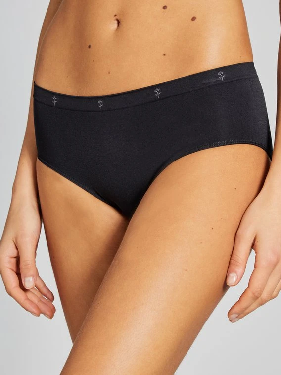 Hüfthoher Slip von SEIDENSTICKER aus der Serie “Micro Flex” ohne Nähte. Durch ultraleichte, elastische Mikrofasern und das seamless Bündchen liefert diese Unterhose einen optimalen Tragekomfort. Der pure Look wird aufgebrochen durch eine hochwertig eingearbeitete Rose am Bund.