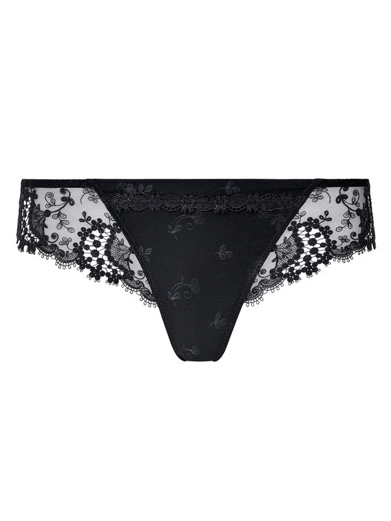 Dieser sexy String aus der Serie “Wish” von SIMONE PÉRÈLE präsentiert sich äußerst schmuckvoll: Stickerei mit Guipure, italienischer Jacquard-Satin und feinster Garn. Eine breite Seitenverarbeitung zaubert optisch eine schlanke Hüfte und verlängert. Was perfekt sitzt und so aussieht, trägt man gerne!