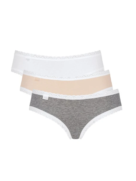 Die Hipster im praktischen 3er-Pack der „24/7 Weekend” Kollektion von SLOGGI kommen mit gewohnt bequemer Passform und im trendigen Design. Das hochwertige Baumwollgewebe mit LYCRA® FREEF!T® X-MOVE sorgt für einen perfekten Sitz und einen hohen Tragekomfort. Die verspielten Spitzen-Einfassungen runden das Design der Panty perfekt ab.