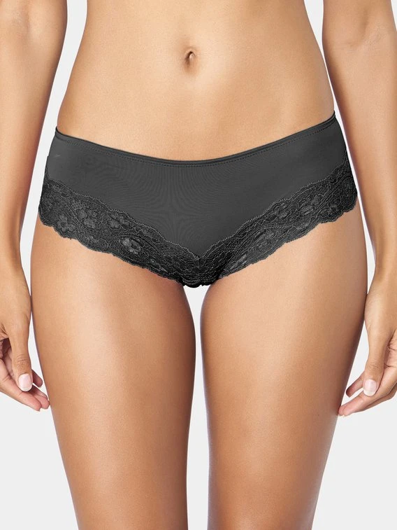 Hübscher Hipster der Serie “Lovely Micro” von TRIUMPH. Herrlich bequem mit glatter Blumenspitze an den Beinabschlüssen überzeugt diese Panty. Die raffinierten Spitzenabschlüsse sind dabei superweich und angenehm auf der Haut.