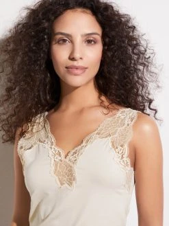 zarter Spitzenbesatz an den Armausschnitten und am V-Ausschnitt